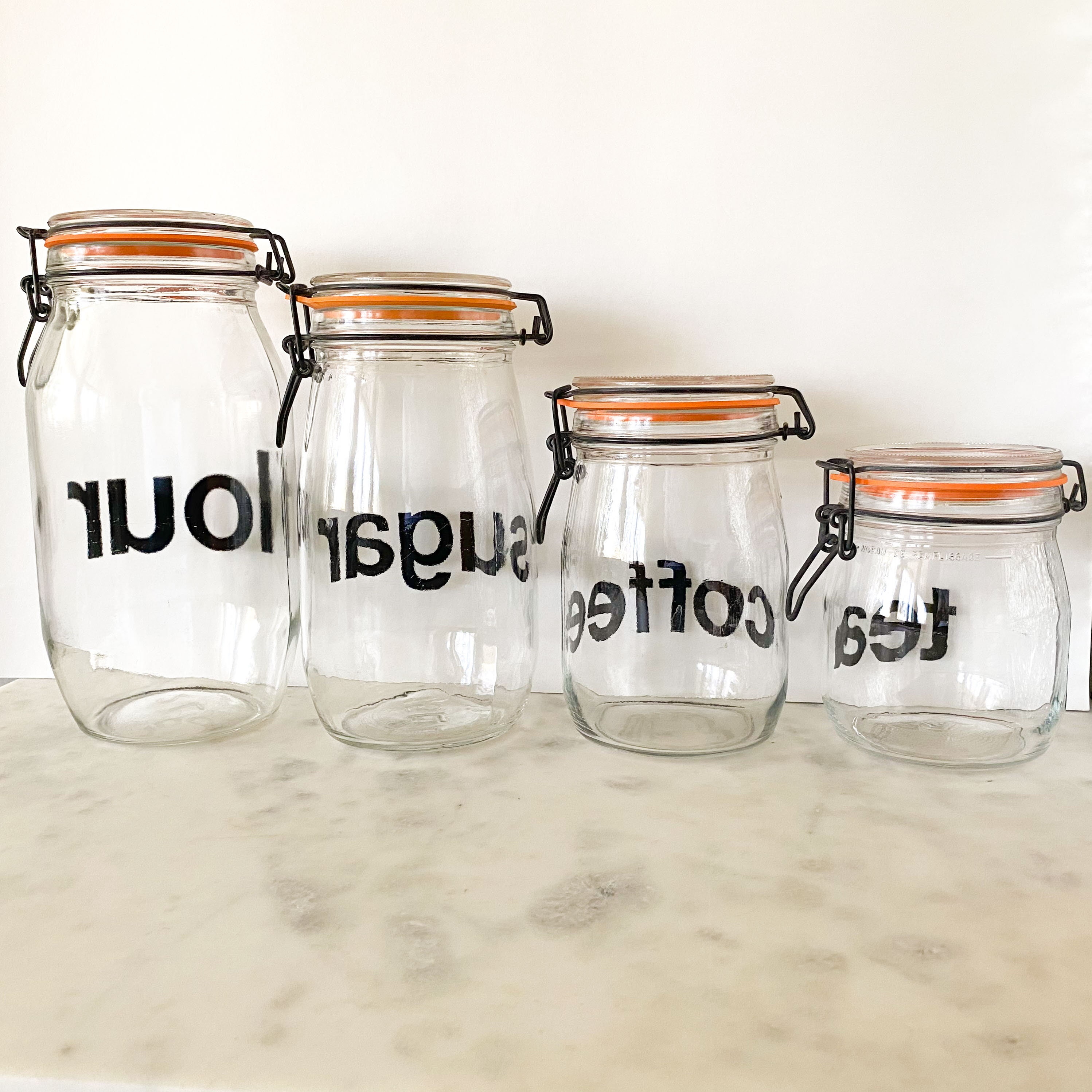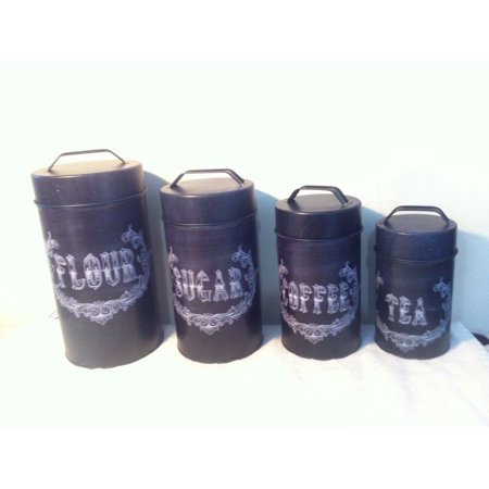 Browse below and take your pick from our broad selection of options, from trusted brands. Set of three black metal kitchen canisters for tea, coffee and sugar. Flour and sugar are obvious for the largest two, but what do you put in the third one? Estilo set of 2 round glass canisters, apothecary jars with airtight lids for storing cookies candies, cereal, includes chalkboard labels and chalk. Canisters usually come in sets of three. Tea coffee sugar canisters storage set kitchen jars containers metal grey red. These decorative canisters have been designed for flour, sugar, coffee and tea storage. A big utensil holder can provide a clean countertop kitchen crock and great for storing all. Each ceramic canister seals for freshness. Find great deals on ebay for canisters flour sugar coffee tea. Flour, sugar, coffee and tea. This is a set of 4 kitchen canisters with copper lids from the 1970's. Order online today for fast home delivery.